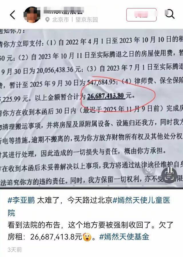 目前房东已经申请强制执行了,也不知道李亚鹏会怎样解决这件事。